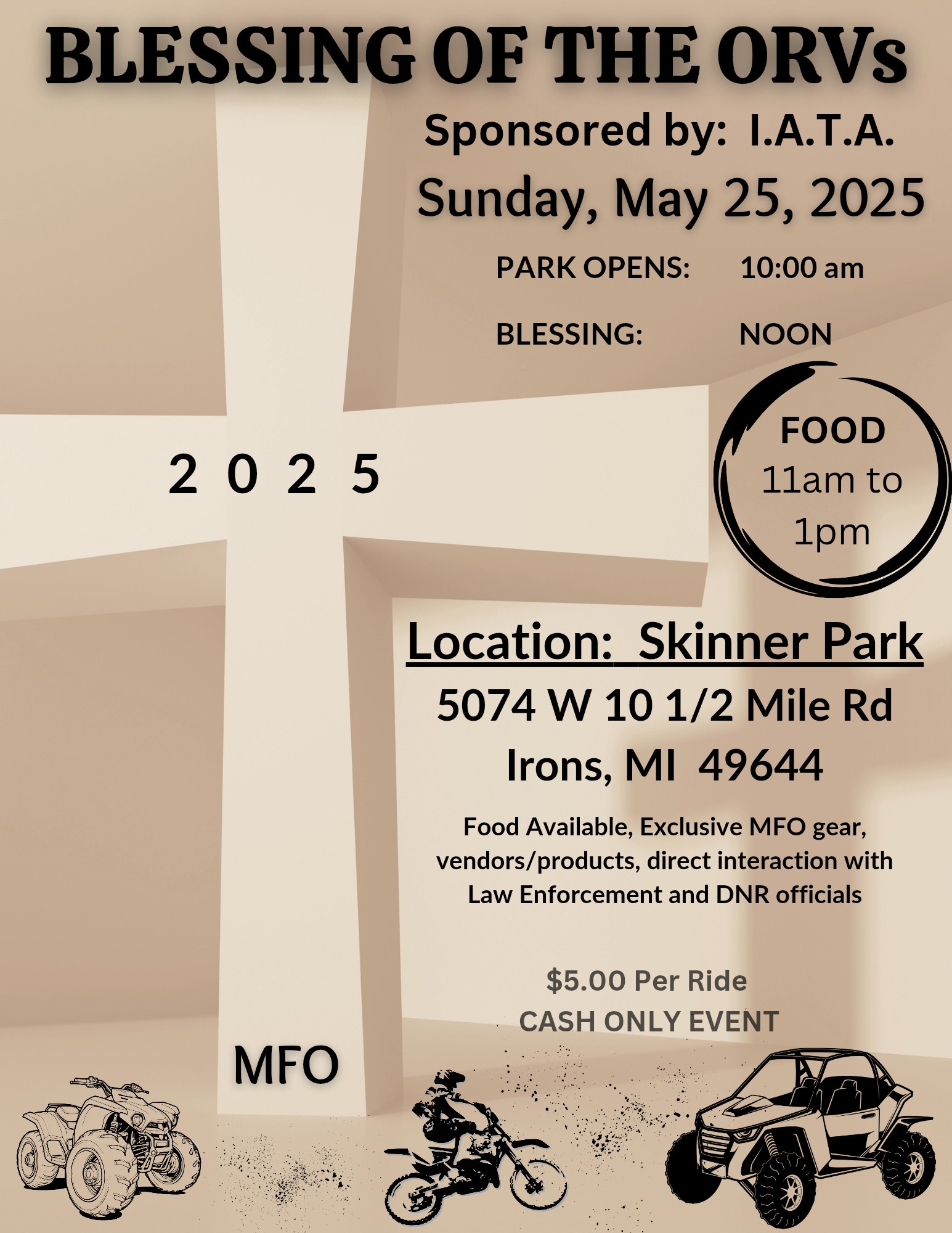 Join the IATA in the Annual ORV blessing at Skinner Park! Vendors, Food, Annual T-Shirt Sales, Law Enforcement questions, followed by the blessing! More details to come! |