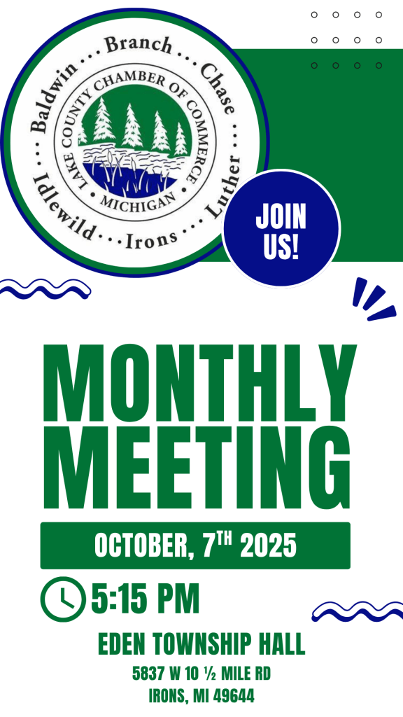 Join us for our monthly meeting today at the Eden Township Hall in Irons Tonight.
